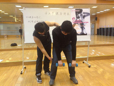 一系列的理论知识介绍后,由刘威教练实地带领同学们大胆尝试各种健身方式。刘威教练在亲身示范练习肩部、背部、腹部等身体各部分肌肉的训练方法及注意事项后,邀请同学们上来进行健身动作的尝试,并耐心的纠正大家健身过程中出现的不规范动作。同学们积极响应,跃跃欲试。在实践中真正掌握正确的健身方式。