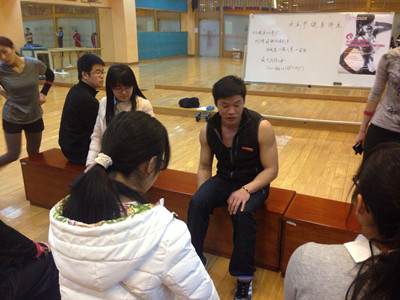 活动开始,由郑艺教练为大家生动地介绍了健身理论、健身塑形方法,以及如何选择自己合适的健身项目等知识。鼓励大家,尤其是女生,用健康科学的方式减肥塑形。让许多同学第一次认真系统的了解科学健身的方式方法,收益匪浅。