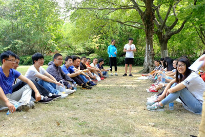 上午十点,在班主任李秋花老师的带领下,班级同学在草坪上席地而坐,开始了素质拓展的第一项活动,趣味性自我介绍。首先由活动的两位主持人进行自我介绍,继而相互点到自己感兴趣的同学进行自我介绍。最有趣的地方在于被点到的同学除了自我介绍之外还需要复述出上一位同学所说的内容。整个自我介绍的过程充满欢声笑语,既增进了同学之间的了解,也消除了初识的拘谨。