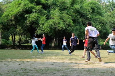 上午十点,在班主任李秋花老师的带领下,班级同学在草坪上席地而坐,开始了素质拓展的第一项活动,趣味性自我介绍。首先由活动的两位主持人进行自我介绍,继而相互点到自己感兴趣的同学进行自我介绍。最有趣的地方在于被点到的同学除了自我介绍之外还需要复述出上一位同学所说的内容。整个自我介绍的过程充满欢声笑语,既增进了同学之间的了解,也消除了初识的拘谨。