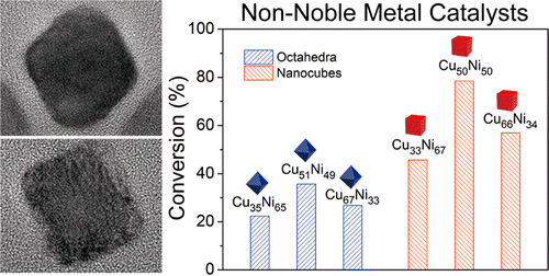 近日,中国科学技术大学合肥微尺度物质科学国家实验室和化学与材料科学学院的曾杰教授课题组在非贵金属纳米催化剂CuNi合金纳米晶研制上取得重要进展。研究人员通过在一步合成法中使用吗啉硼烷作为还原剂,成功制备了CuNi合金八面体和立方体,并在A