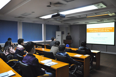应吴明卫教授的邀请,12月28日,顶峰多尺度科学研究所Prof. QI Jingbo来实验室进行学术交流与访问,并为师生们作题为“Ultrafast charge and spin dynamics in topological insulator Bi2Se3”的学术报告。