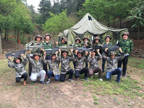紫蓬山山顶西庐寺 中午大家品尝了山脚下的农家菜,并进行了短暂的休息。下午1点左右,我们来到了风行素质拓展基地。为了契合这次“纪念长征胜利80周年”的活动主题,素质拓展活动内容包括负重越野,模拟枪械射击,训练教官还教给我们基本的野外生存知识。我们的训练场地是一片山包,第一个项目是负重越野,大家背着装有重物的背包在教官的带领下翻越山包,山路崎岖不平,有时需要手脚并用,在负重情况下还要保持一定的行进速度相当吃力,最终在大家的互帮互助下按时完成了任务。第二个项目是模拟枪械射击。同学们分成两队,用激光枪械代替真枪,在林地间展开了一场激烈的模拟战争。战斗十分激烈,不时有人“中弹身亡”,透过这场模拟战斗我们多少体会到了一些战争的残酷以及战友间情谊,不禁令人感叹当年的革命先烈们是多么坚韧不屈,多么英勇壮烈。