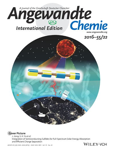 这种无贵金属参与的硫化物异质纳米结构,为传统半导体的光电应用提供了新的材料设计思路。该成果“Integration of Semiconducting Sulfides for Full-Spectrum Solar Energy Absorption and Efficient Charge Separation”近期以VIP Paper发表在《德国应用化学》(Angew. Chem. -Int. Ed. 2016, 55(22), 6396-6400),并被选为Front Cover。论文发表后受到了学术媒体的广泛关注。Angewandte Chemie Press Room-Wiley-VCH、ChemistryViews、Phys.Org、 MaterialsViews、spectrascorpyNOW.com、Open Nanofabrication、NanoWerk等媒体分别以题为“Beyond the Rainbow Colors”、“Nanocrystals expand the range of solar cell light energy to ultraviolet and infrared regions”、“Integration of semiconducting sulfides for full-spectrum solar energy absorption and efficient charge separation”、“Integrated solar energy: EDS lights up”、“Making Solar Cells more Efficient: Nanocrystals Expand the Range of Solar Cell Light Energy to Ultraviolet and Infrared Regions”报道了本工作。