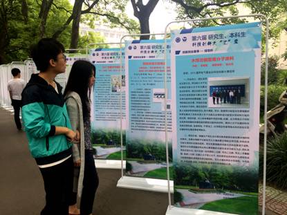 科技创新大“汇”堂活动汇集了包括微尺度物质科学国家实验室、化学院、挑战杯、校绿地杯、科普大赛、“互联网+”大赛等多项由校内学生获得的科研成果,制成54块展板,于科技活动周当天,摆放在图书馆旁的天使路和孺子牛路。刚一展出,就吸引了不少同学驻足观看。