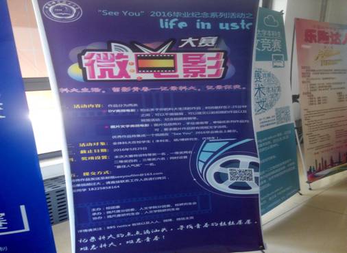 “瀚海乾坤,思忆科大”,“See You 2016”系列活动之Life in USTC 微电影大赛成功举办。本次活动由校团委主办,微尺度分团委、人文学院分团委和校研究生会联合承办,微尺度研究生会和人文学院研究生会协办。这是一次极具创新与挑战的活动。