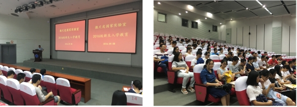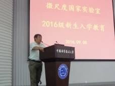 清凉的风吹过,带走丝丝难耐的暑气,清新的面孔注入校园,带来一股新鲜的气息。2016年9月8日下午16:00点,微尺度国家实验室在理化大楼西三报告厅举办了2016级硕士、博士新生入学教育大会。本次入学教育大会旨在让2016级研究生新生对微尺度国家实验室的学习和生活有一个基本的了解,为下一阶段的学习做好思想准备。微尺度国家实验室分党委书记王兵教授、副主任陈旸教授、学工负责人石磊教授、分团委书记黄健柳老师、新生班主任、教学秘书等参加了会议。