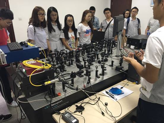 本次科学岛之行活动共45人参加,得到了师生的广泛支持,和科学岛丁守军师兄及科学岛研会人员的热烈欢迎。活动第一站,大家一起参观了中国科学院安徽光学精密机械研究所,丁守军师兄热烈欢迎大家的到来,并认真地为大家讲解了安光所的发展历史及建设状况。初次见到安光所里的大型晶体合成设备,同学们都非常兴奋,不时地向师兄询问学术方面的问题。在展览馆里,同学们参观了各种合成出的晶体,并且亲身体验到了光学世界的神奇。