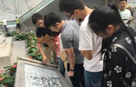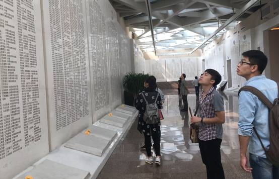 当同学们参观到渡江战役烈士名单展馆时,表情深邃陷入沉思。27块巨型石碑雕刻着一个个牺牲的烈士的名字,近万名烈士安眠于此。没有革命先烈用生命换取的和平,怎么会有我们如今的学习研究条件?