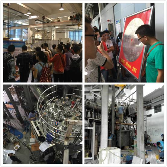 第三站,大家一起参观了强磁场科学技术中心,娄雪老师热烈欢迎大家并认真地为大家讲解了强磁场科学技术中心的发展历史及建设状况。了解到强磁场取得的世界领先成就,同学们都异常兴奋。同学们一路上兴高采烈地参观大型工程设备,并不时向娄雪老师询问学术方面的问题。在强磁场参观结束之际,娄雪老师鼓励大家在以后的科研中充分利用科学岛上的仪器设备,加强科学岛和科大基础研究实验室的合作。