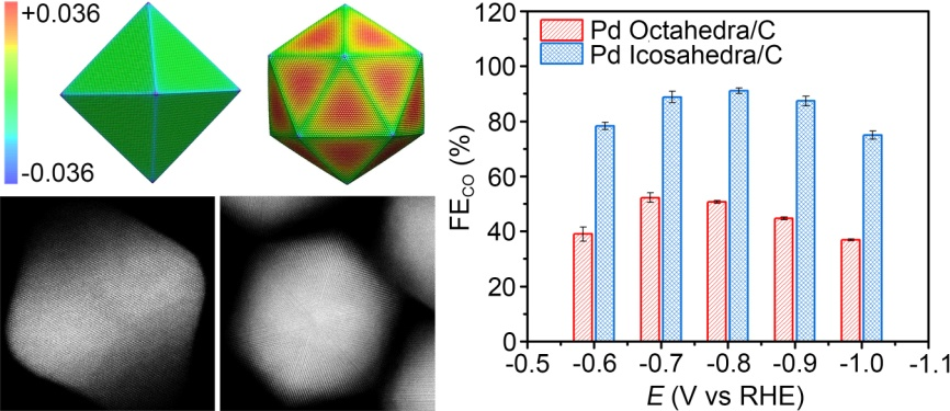 2电催化还原反应的调制方面取得重要进展。研究人员设计合成了Pd单晶八面体纳米晶和孪晶二十面体纳米晶的准模型催化体系,详细阐述了Pd纳米晶表面应力与CO