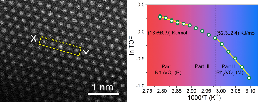 负载型金属纳米催化剂在产氢反应中有着优异的催化性能,影响其性能的关键因素甚至是决定性因素便是衬底的选择。因此,深入地研究催化剂中金属-载体相互作用与其催化性能之间的关系至关重要。然而,由于缺乏在原子尺度上对多相催化产氢反应过程的详尽理解以及对活性位点的明确标识,定量理解金属-载体相互作用的本质仍是一项巨大的挑战。基于单原子催化剂研究金属-载体相互作用能够排除金属颗粒在金属-载体界面上尺寸、形貌和取向的影响,因此,单原子催化剂被视为理想的研究平台。此外,氧化物相变材料被认为是研究该相互作用理想的载体材料,因为其可以在调控能带结构的同时,保持单原子或活性位点的空间分布不改变。