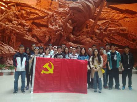 伴随着昂扬有力的革命歌曲,党支部全体成员怀着崇敬的心情来到渡江战役纪念馆,一起回顾那场惊心动魄的战役,缅怀革命先烈。在讲解员耐心讲解和带领下,先后参观了解放广场,渡江战役总前委群雕,六大展厅。展厅更是通过各种现代科技手段,全面生动地再现了渡江战役,让同学们视听结合,如临现场,深刻地感受了那场动人心魄的战役,面对众多珍贵的革命文物以及历史图片,大家满怀热情积极探讨和交流,整体气氛严肃又活泼。在无名烈士纪念堂前,学生党员集体进行了献花。