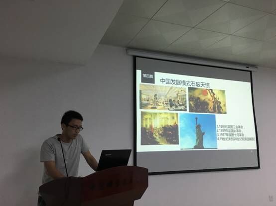 首先是杨康同志对《高思在云——中国兴起与全球秩序重组》的分享,他简述了全书的大纲,重点分享了《中国发展模式石破天惊》及《中国带动21世纪全球秩序重组》两个章节,同时结合目前正在开展的金砖国家领导人会晤这一时事,阐述了“中国的发展必将重组目前的全球秩序,更深远影响着人类社会,带来更加和平、更加繁荣的世界”的感悟。