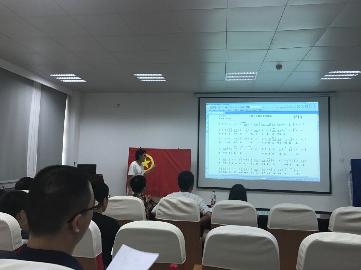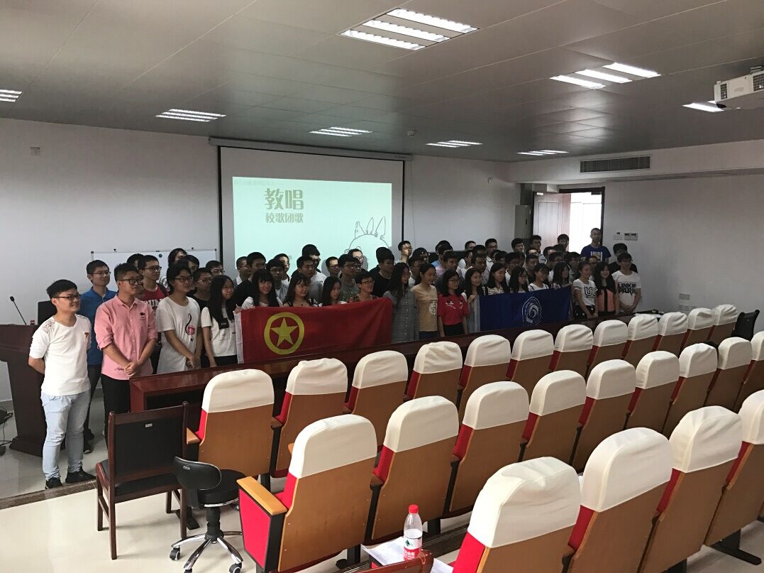 活动中,钱泽华同学还对大家进行了中国科学技术大学校歌《永恒的东风》及中国共青团团歌《光荣啊!中国共青团》的演唱培训,使得同学们在较短的时间内掌握了两首歌的演唱方法。最后活动在嘹亮的校歌和团歌声中顺利结束。