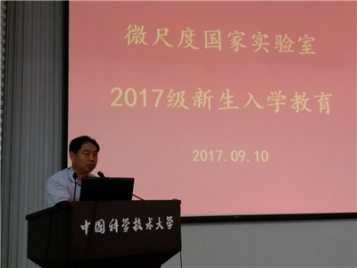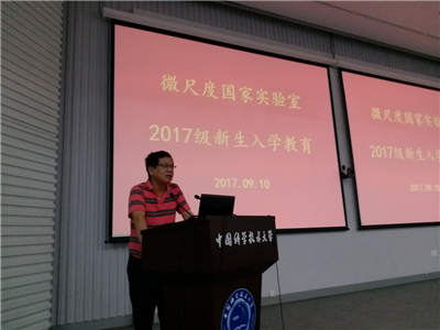 首先,石磊老师代表微尺度国家实验室对2017级研究生新生的加入表示热烈欢迎,并宣布微尺度2017级研究生新生入学教育正式开始。