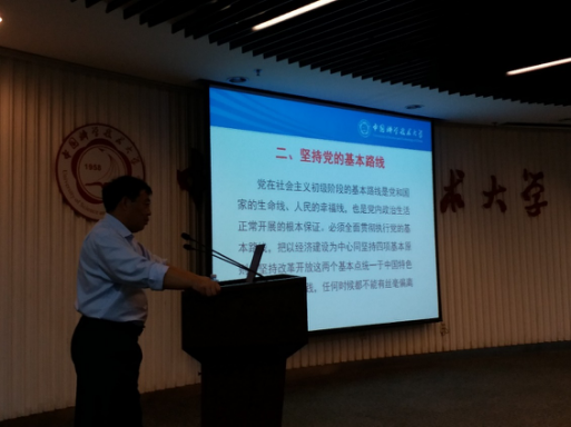 为进一步贯彻落实中共中央、国务院《关于加强和改进新形势下高校思想政治工作的意见》指示,深入学习习近平总书记考察中国科大重要讲话精神,努力培养当代大学生高度的政治责任感和紧迫的历史使命感。2017年9月13号下午4时,微尺度国家实验室分党委书记王兵教授以“关于新形式下党内政治生活的若干准则”为主题,为参加微尺度国家实验室第一届青年马克思主义者培养工程“六有”大学生团校培训的同学、微尺度国家实验室分团委委员和各高年级团支部书记讲述了十八届六中全会的主要内容,并结合自身实际分享了学习体会。