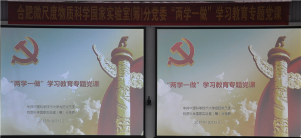 根据微尺度分党委“两学一做”学习教育计划,中共安徽省委党校胡东升教授,受微尺度教工第二党支部和微尺度党委邀请,于2017年10月12日下午4:00-6:00,在中国科学技术大学理化大楼西三报告厅,向微尺度物质科学国家实验室的全体师生党员做了《深刻领会习近平总书记系列重要讲话精神》的报告。报告会由微尺度党委书记王兵主持。