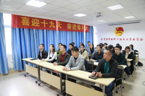 微尺度物质科学国家实验室党委、骨干教师、师生员工等共100余人,在理化大楼一楼科技展厅集中观看十九大实况转播。