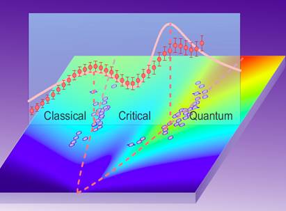 针对这一悬而未决的重要基础物理问题,在实验上,该联合研究团队创造性地搭建了新的实验系统,开发了独特的量子调控技术,通过产生均匀冷原子势阱巧妙地制备了一维超冷原子系综;通过高分辨原位成像技术精确地测量了一维原子线密度;通过产生密度缺陷之后观测系统的声子传播获得了拉亭杰指数;引入原子再聚焦方法测量了原子动量空间分布,并首次实验观测了TLL特有的性质——关联函数随着距离按照幂指数衰减。在理论上,该联合研究团队使用量子可积系统的Yang-Yang方法给出该模型的量子液体和临界行为(该方法由杨振宁和杨振平在1969年理论推导得出),通过对实验观测的原子密度分布数据进行分析,提取了体系压强、熵密度、比热和压缩率等热力学量,推导出其遵循的普适规律;通过比热的双峰结构首次用实验数据明确地定出了相图上经典气体、量子临界区和TLL三个区域(如右图)。