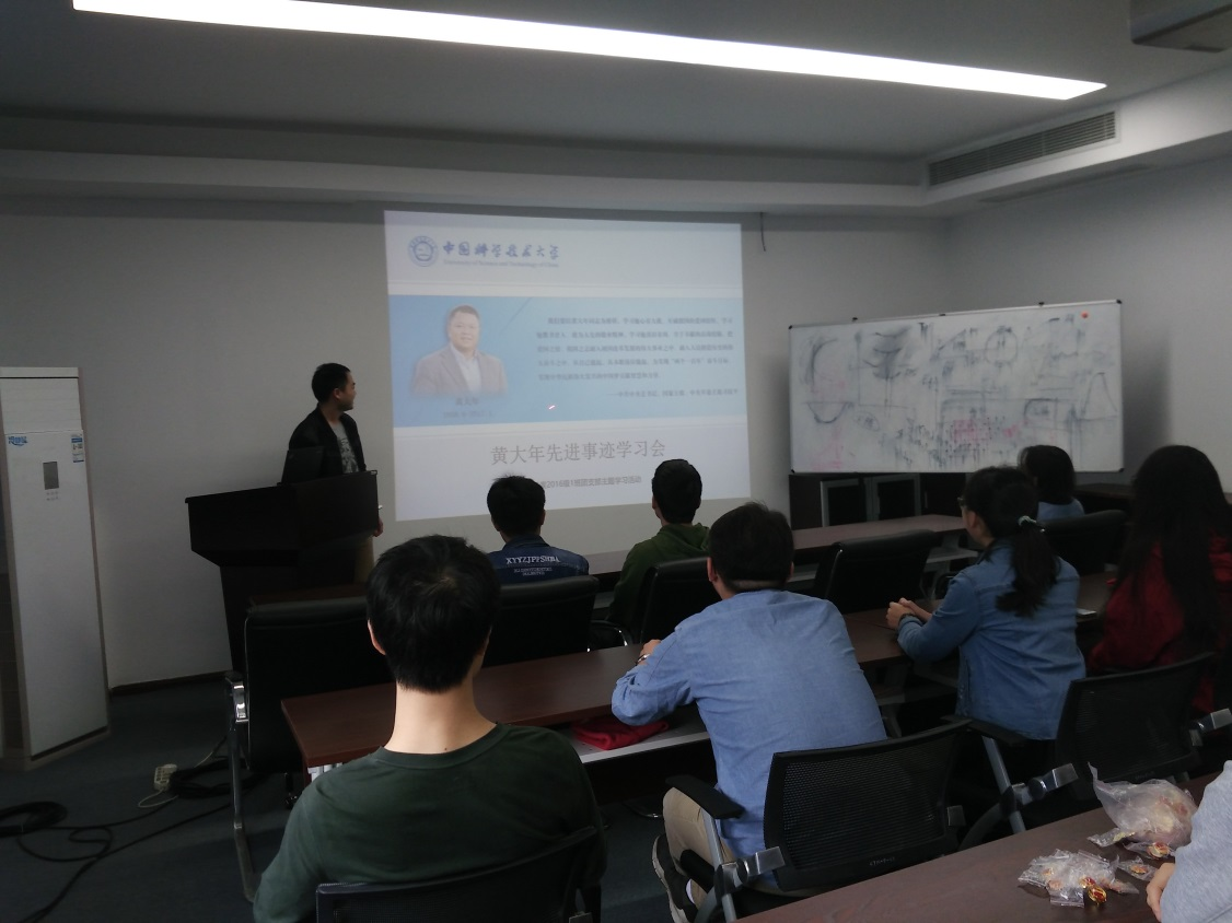 根据学校《关于开展学习黄大年同志先进事迹的通知》精神,为深入学习著名地球物理学家、吉林大学地球探测科学与技术学院黄大年教授爱国、报国、为祖国奉献一切的感人事迹和崇高精神,10月15日下午,微尺度国家实验室2016级硕博1班团支部组织支部成员一起学习了黄大年教授先进事迹。