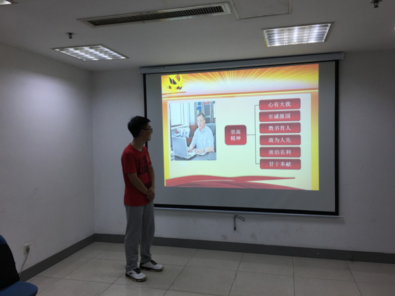 报告会上,微尺度XRD实验室团支部书记童瑞雪同学详细介绍了黄大年同志的生平事迹。1981年12月,毕业于长春地质学院,他以“振兴中华,乃我辈之责”书写爱国报国之志;后赴英国留学,在海外的18年里,他密切关注祖国科技事业的发展,在情感上“从未和祖国分开过”;2010年归国,任教于吉林大学。回国后的七年,他更是日以继夜、忘我工作,成为众人眼中的“拼命黄郎”,拼搏至生命最后一息。吉林大学也是童瑞雪同学的母校,关于“拼命黄郎”他谈到一个细节:黄大年教授的一位同事,多次收到黄大年教授凌晨3点钟的工作邮件。