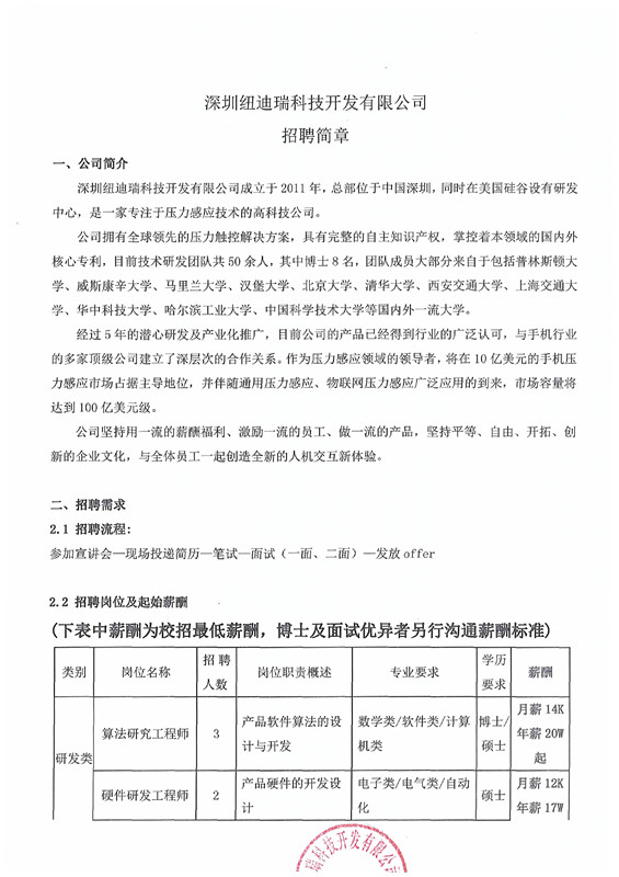 深圳纽迪瑞公司校园招聘简章