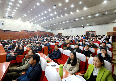 12月4日下午,按照学校统一部署,中国科学技术大学十九大精神宣讲团成员、校党委副书记、纪委书记叶向东,在东区水上报告厅为物理学院和化学与材料科学学院师生集中宣讲党的十九大精神。物理学院、化学与材料科学学院党委主要负责人、各党总支、党支部负责人,教工党员及学生党员代表300余人参加了报告会,报告会由物理学院党委书记叶邦角主持。