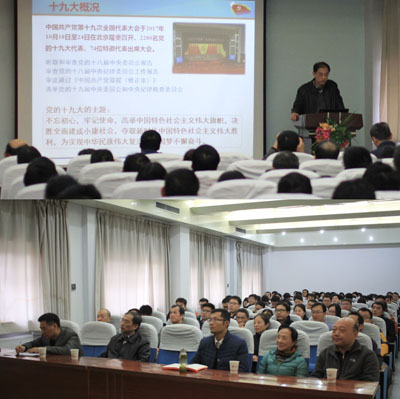 最后,刘明侯指出,十九大精神内容丰富,内涵深刻,我们除了参加集中宣讲报告之外,还要通过“三会一课”、主题党日、多种形式交流活动等进一步学习领会。各党总支、教工党支部要以实际行动,多层次、全覆盖地学习宣传十九大精神。要牢记习近平总书记视察科大时对我校师生的殷切期望,为“双一流”建设贡献自己的力量。
