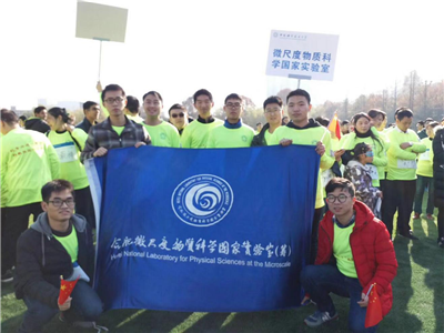 1935年12月9日,北平(北京)大中学生数千人举行了抗日救国示威游行,反对华北自治,反抗日本帝国主义,要求保全中国领土的完整,掀起全国抗日救国新高潮,这就是著名的“一二•九”爱国主义运动。82年之后的下午,为了纪念这次活动,微尺度国家实验室共40余名同学参加了由学校校团委举办的“一二•九”长跑活动,以此“传承一二•九运动,践行爱国主义精神”。微尺度团总支书记孙梅老师也到达现场,为同学们加油助威。