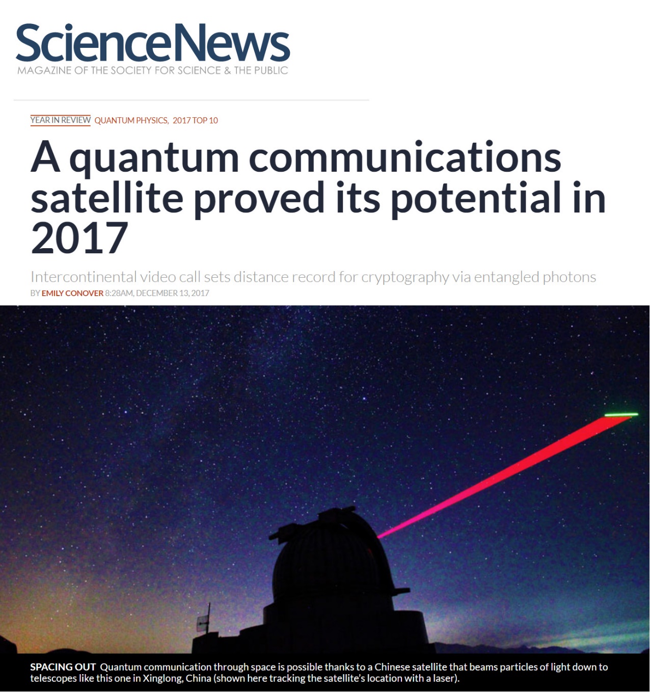 3. “墨子号”研究成果入选美国《科学新闻》评选的“2017年度十大科学事件”