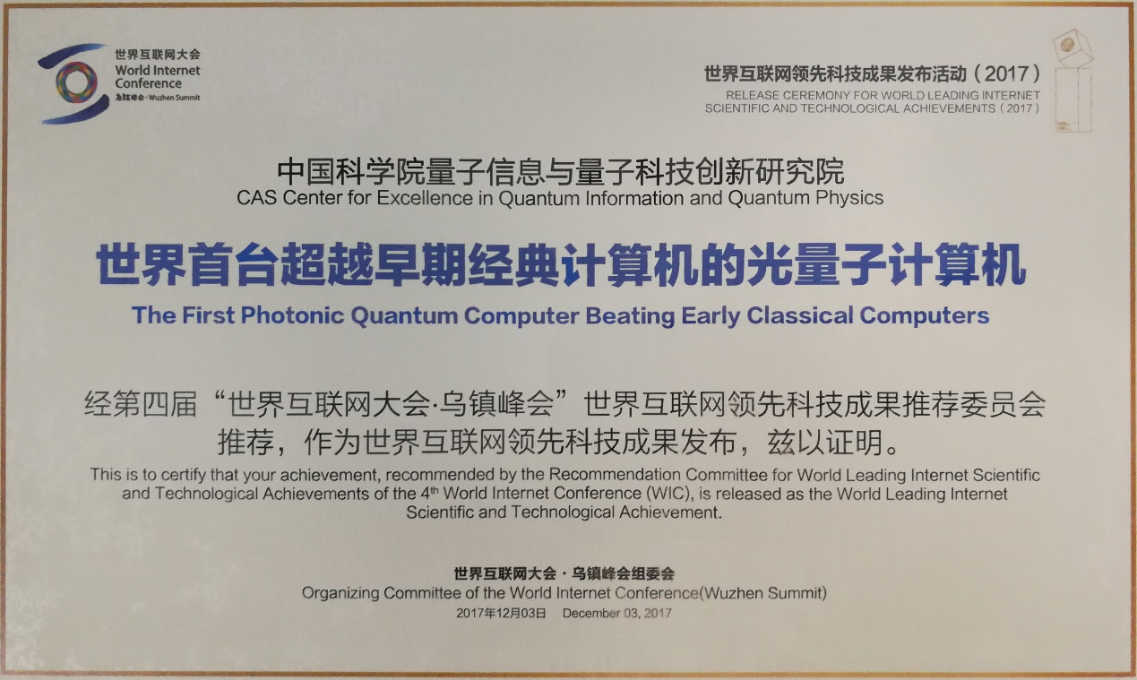 5. 潘建伟团队光量子计算研究成果入选第四届世界互联网大会年度世界互联网领先科技成果