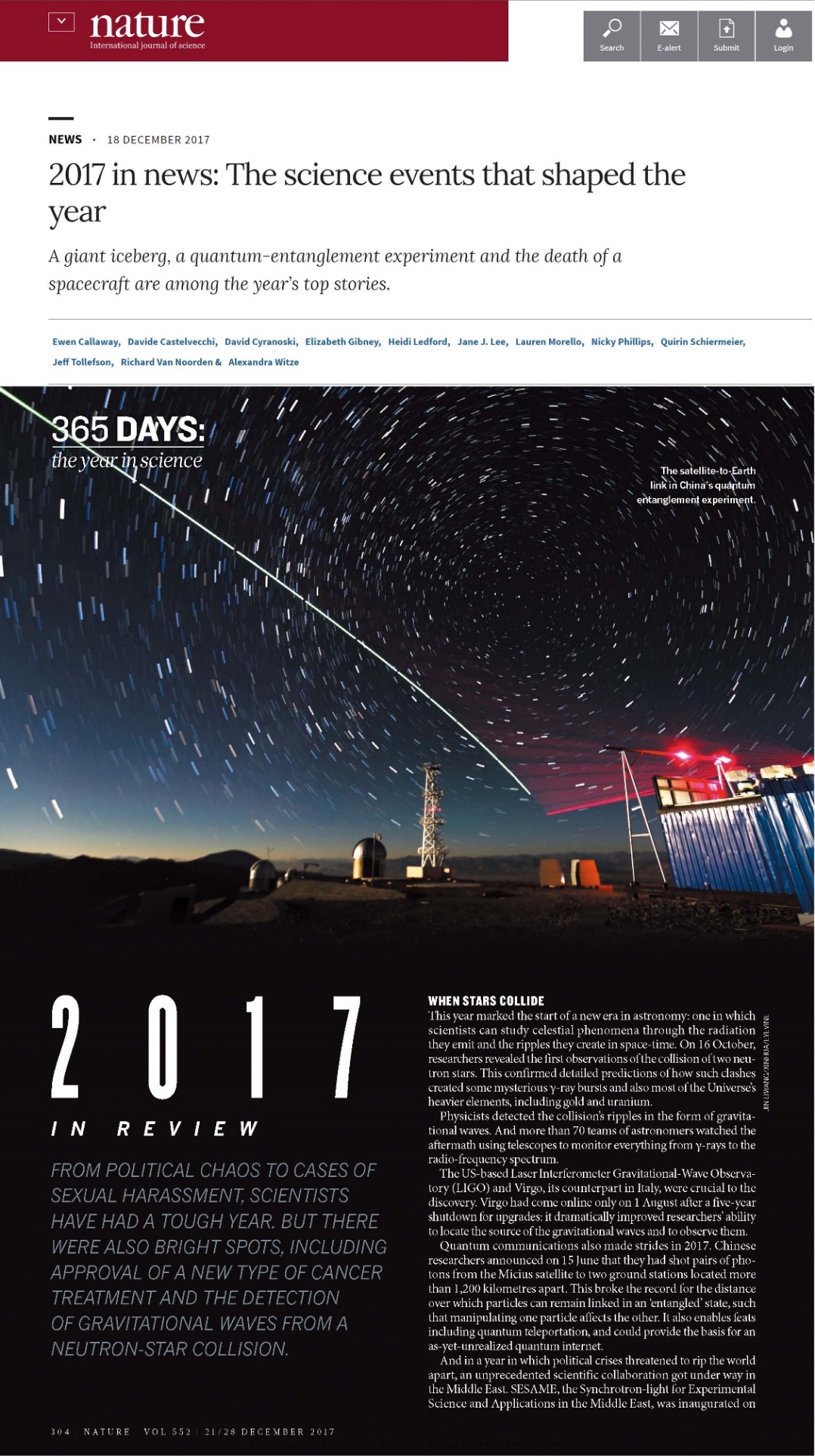 2. “墨子号”研究成果入选《自然》杂志评选的“2017年重大科学事件”