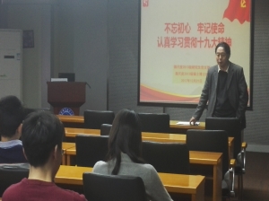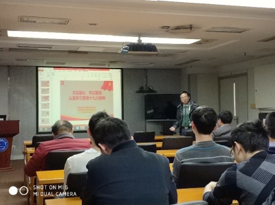 会议开始,袁学友同学首先做党的十九大会议精神学习宣讲,重点从党的十九大报告的意义及地位、主要内容和亮点等方面,阐述了十九大报告提出的新思想、新论断、新举措,分享了自己学习十九大会议精神的体会,并结合报告中关于“加快建设创新型国家”的重大部署,畅谈了自己的学习认识和思考。