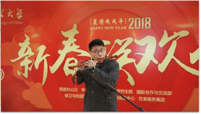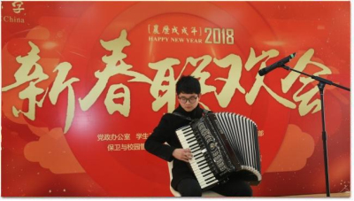 联欢会上,同学们表演了精心准备的节目。笛子独奏《雨新江南》表达了留校学生的思乡之情,男声独唱《喜欢你》倾诉了学子对学校、老师和同学的款款深情,手风琴独奏《春节序曲》将联欢活动的气氛推向了高潮。