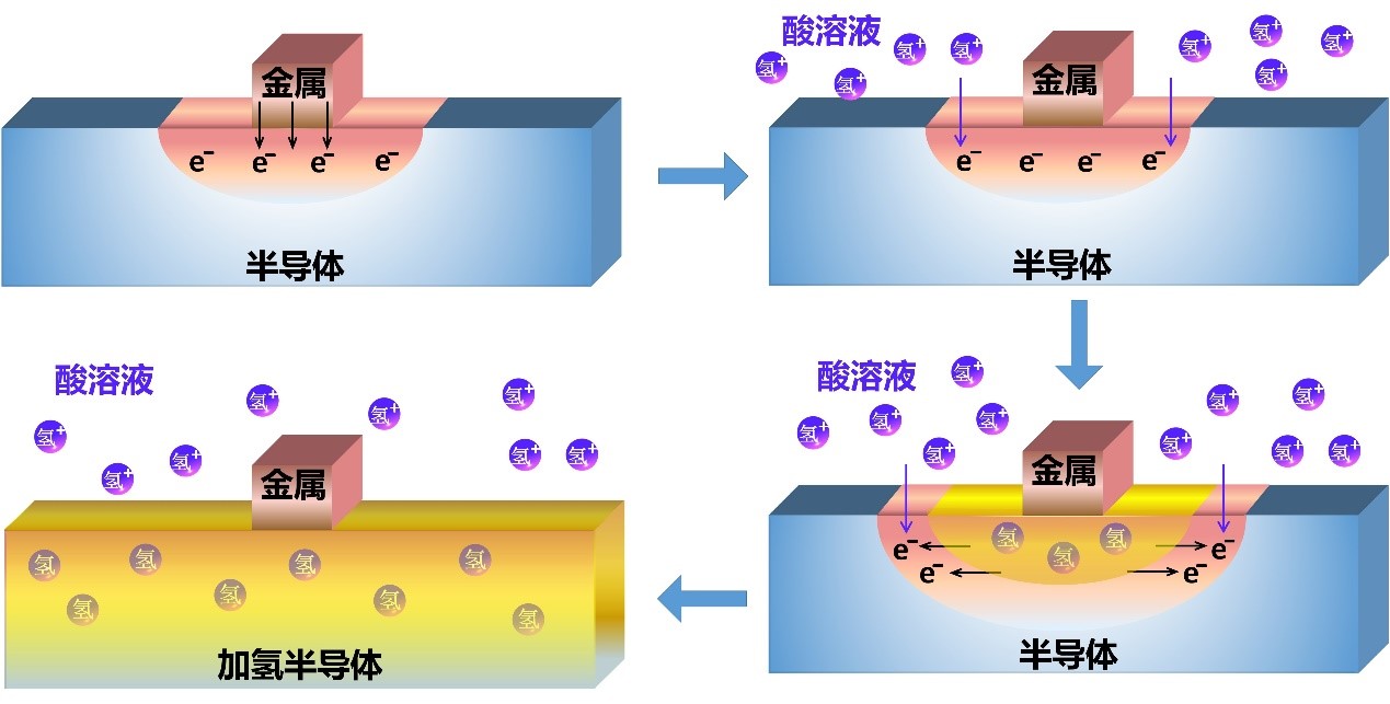 酸溶液中金属与半导体接触后的电子-质子协同掺杂策略实现氧化物半导体材料加氢