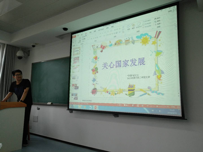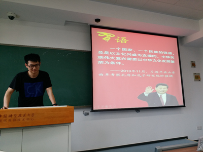 在研讨会开始前,肖冠男同学与大家分享了一个关于介绍“中国梦”精神内涵的短片,通过短短几分钟展示,在场的所有人无不感受到梦想与精神的力量。对于每个不同的个体来说,每个人都有着自己的梦,而大家的梦汇聚在一起就成了实现中华民族伟大复兴的中国梦。