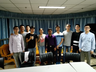 刚开始,主持人陈实向大家介绍了Wali师兄的基本情况和活动的大致流程。接下来,Wali师兄和大家谈起了自己选择粒子物理这条科研道路的原因--心中深藏的对探索宇宙物质奥秘的热忱。随后,师兄和大家分享了学习汉语的感悟,通过四个月的中文学习,现在已经基本交流无障碍。活动临近尾声,Wali师兄根据自己的科研经历给大家提出几点建议:首先要设立并且坚持目标,其次要学习必备技能,如语言、软件等,最重要的一点要保持独立和自信,并且向着自己的目标坚持前行。最后,大家就自己感兴趣问题与师兄进行了直接交流。活动结束后,大家和师兄合影留念。