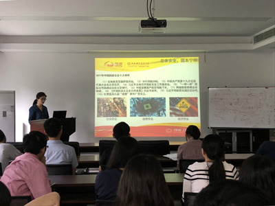 班会首先列举了2017年中国国家安全十大事件。这些事件在社会上引起了巨大的反响。国家安全问题包含了社会安全,信息安全和经济安全三个主要方面,每个方面都与我们的生活息息相关。
