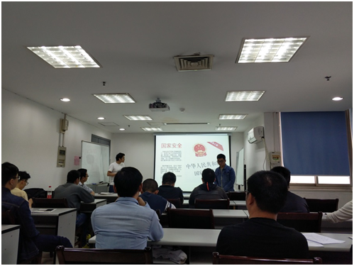 4月15日是全民国家安全教育日,为积极响应教育部《关于加强大中小学国家安全教育的实施意见》要求,微尺度2013级硕士博士班于2018年5月22日在理化大楼6楼会议室召开了以“国家安全教育”为主题的班会活动,全体同学参加并学习。班会由2013级研究生党支部书记主讲,班主任高关胤老师参加班会并和同学们交流分享学习体会。