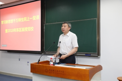 6月8日下午,“学习新思想千万师生同上一堂课”暨2018年东区面授党校在第一教学楼开班,校党委书记舒歌群做开班讲话。来自全校各院系的入党积极分子、青马工程培训班学员、学工干部共230多人参加了活动。校党委副书记蒋一,党政办公室、党委组织部、学生工作部(处)、校团委和相关学院主要负责人参加了开班仪式。开班仪式由物理学院党委书记、副院长叶邦角主持。