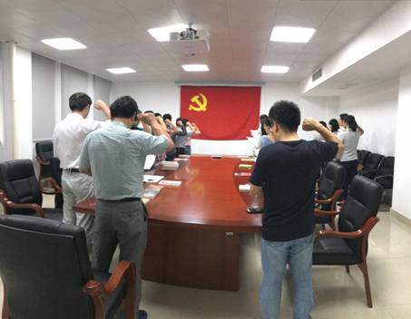 活动开始,首先为每位党员发放政治生日贺卡;发放佩戴党徽;发放《习近平谈治国理政》、《梁家河》、《顶天立地谈信仰》等共享党课学习书籍;组织委员王秀霞领誓,所有党员一起重温入党誓词等。