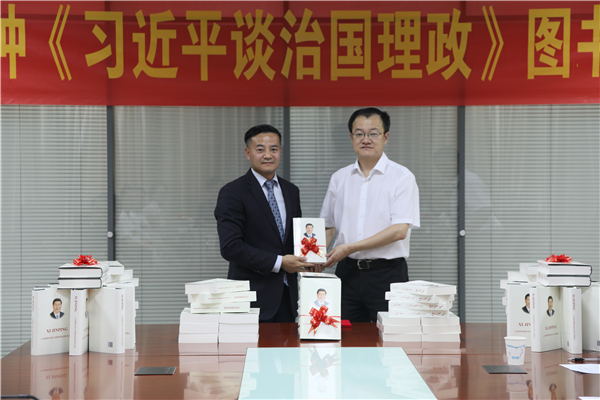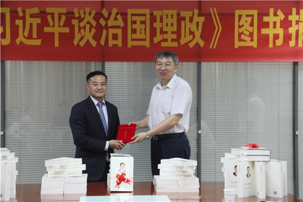 7月18日上午,多语种《习近平谈治国理政》图书捐赠仪式在中国科学技术大学图书馆举行。北京崇学文化发展有限公司负责人余富文代表公司向学校赠送了《习近平谈治国理政》多语种版图书,校党委常委、副校长杜江峰代表我校接收捐赠,校党委书记舒歌群向余富文颁发捐赠证书,党政办公室、党委宣传部、图书馆等单位负责人参加了捐赠仪式。