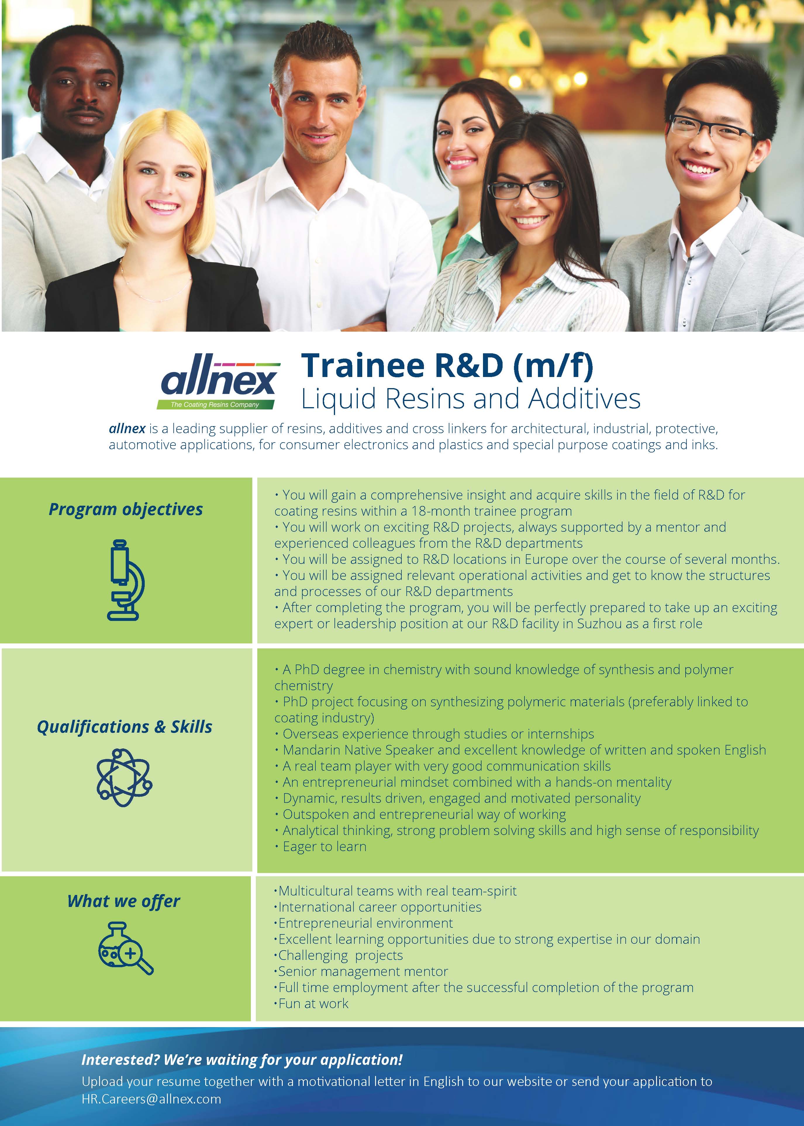 湛新树脂公司招聘 R&D Trainee - PhD