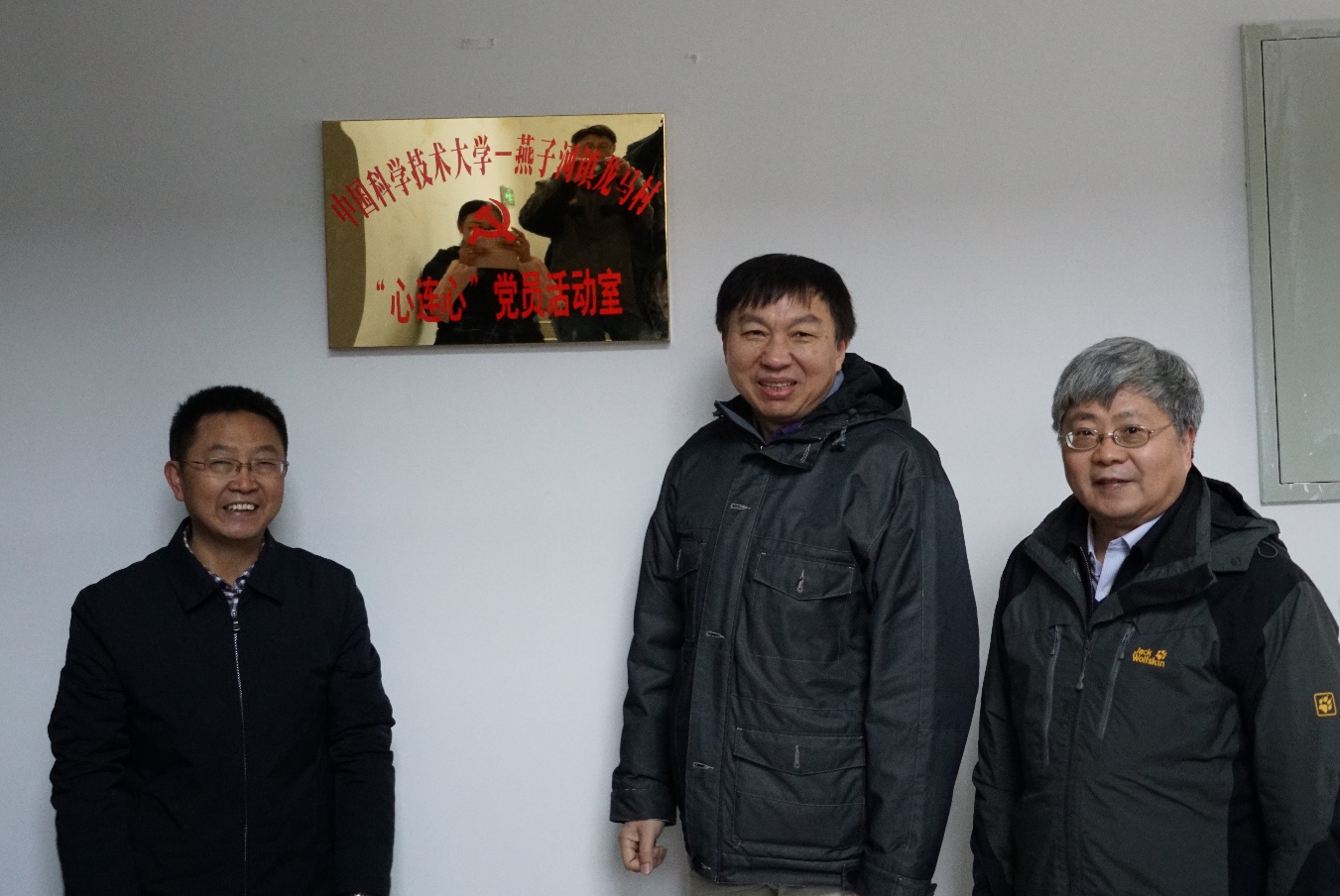 之后,舒歌群一行来到龙马村新建的党群服务中心,为中国科学技术大学-燕子河镇龙马村“心连心”党员活动室揭牌。为支持龙马村加强基层党建,学校拨付结余党费20万元帮助龙马村建设党员活动室,积极支持龙马村开展党建活动,推动学校基层党组织到龙马村开展结对党建。