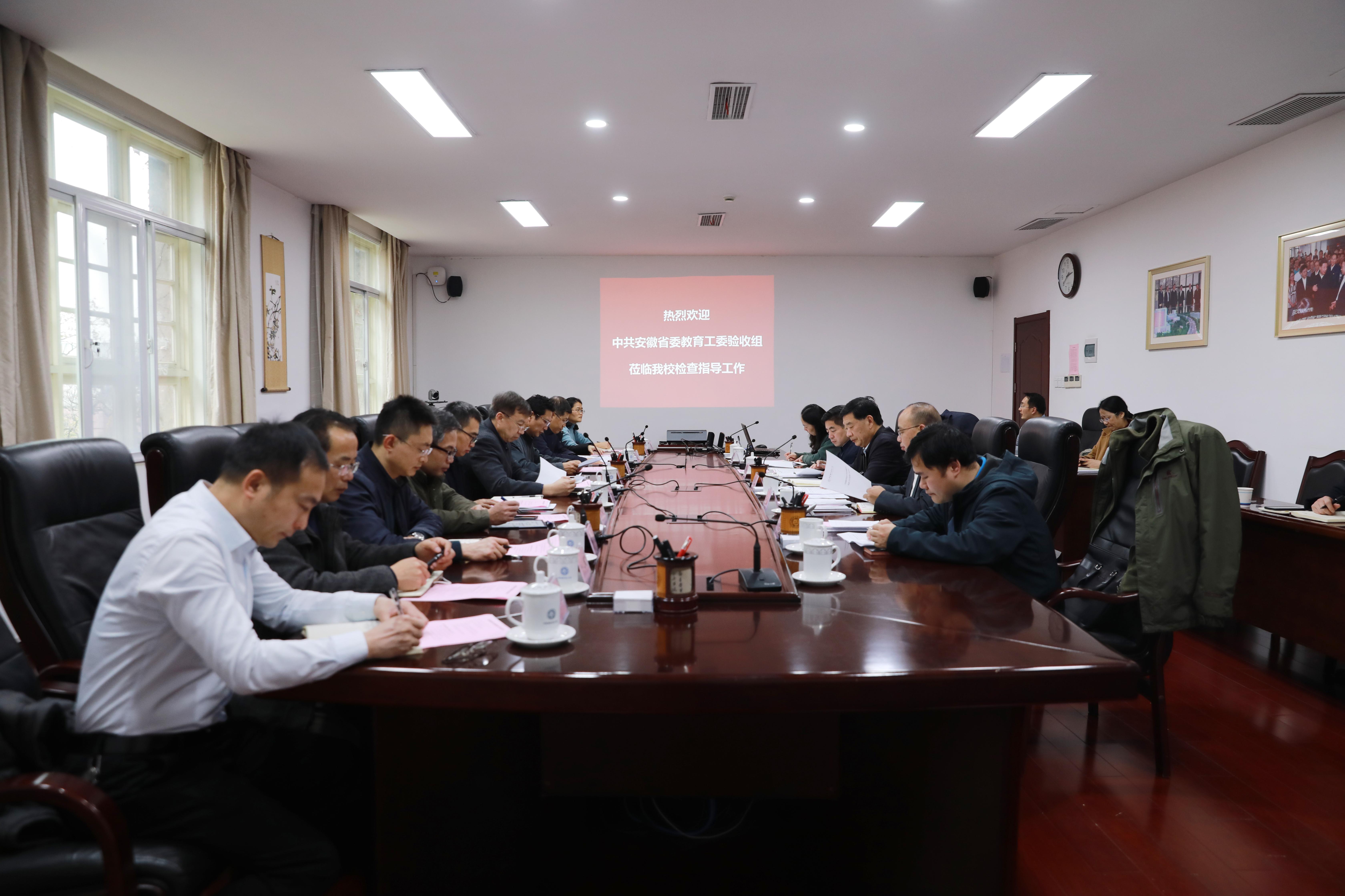 12月7日下午,根据教育部要求,中共安徽省委教育工委副书记庆承松率验收组成员来我校对首批党建工作示范高校和全国党建工作样板支部进行验收,党委书记舒歌群主持召开验收工作汇报会。会上,与会人员集体观看了中国科大创建全国党建工作示范高校视频,党委常务副书记蒋一围绕“六个过硬”汇报我校培育创建全国党建工作示范高校情况,验收组成员与党群部门主要负责人就相关问题进行了交流。