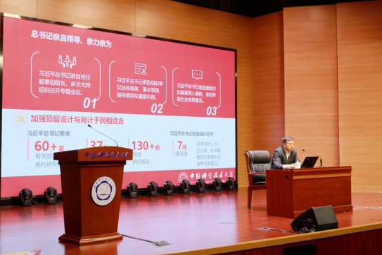 12月18日下午,在东区水上报告厅,中国科学技术大学学习贯彻党的十九届五中全会精神宣讲团团长、校党委书记舒歌群以“学习贯彻党的十九届五中全会精神”为题,作十九届五中全会精神宣讲。物理学院、化学与材料科学学院师生代表现场聆听了报告,报告会由物理学院党委书记兼副院长陈向军主持。