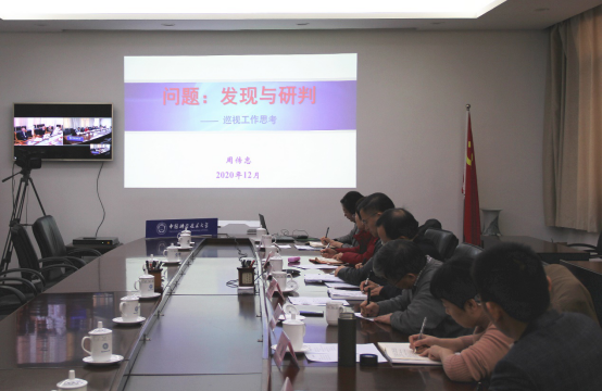 12月23日上午,中科院监审局副局长、巡视办副主任周传忠及巡视办相关处室负责同志调研我校巡察工作,调研座谈会采用视频形式,我校会场在218楼二楼会议室。校党委副书记、纪委书记、巡察工作领导小组副组长毕金初,校党委第四轮巡察组特邀指导专家、院巡视组组长周四根,巡察组组长和巡察骨干以及巡察办全体成员参加调研座谈会。