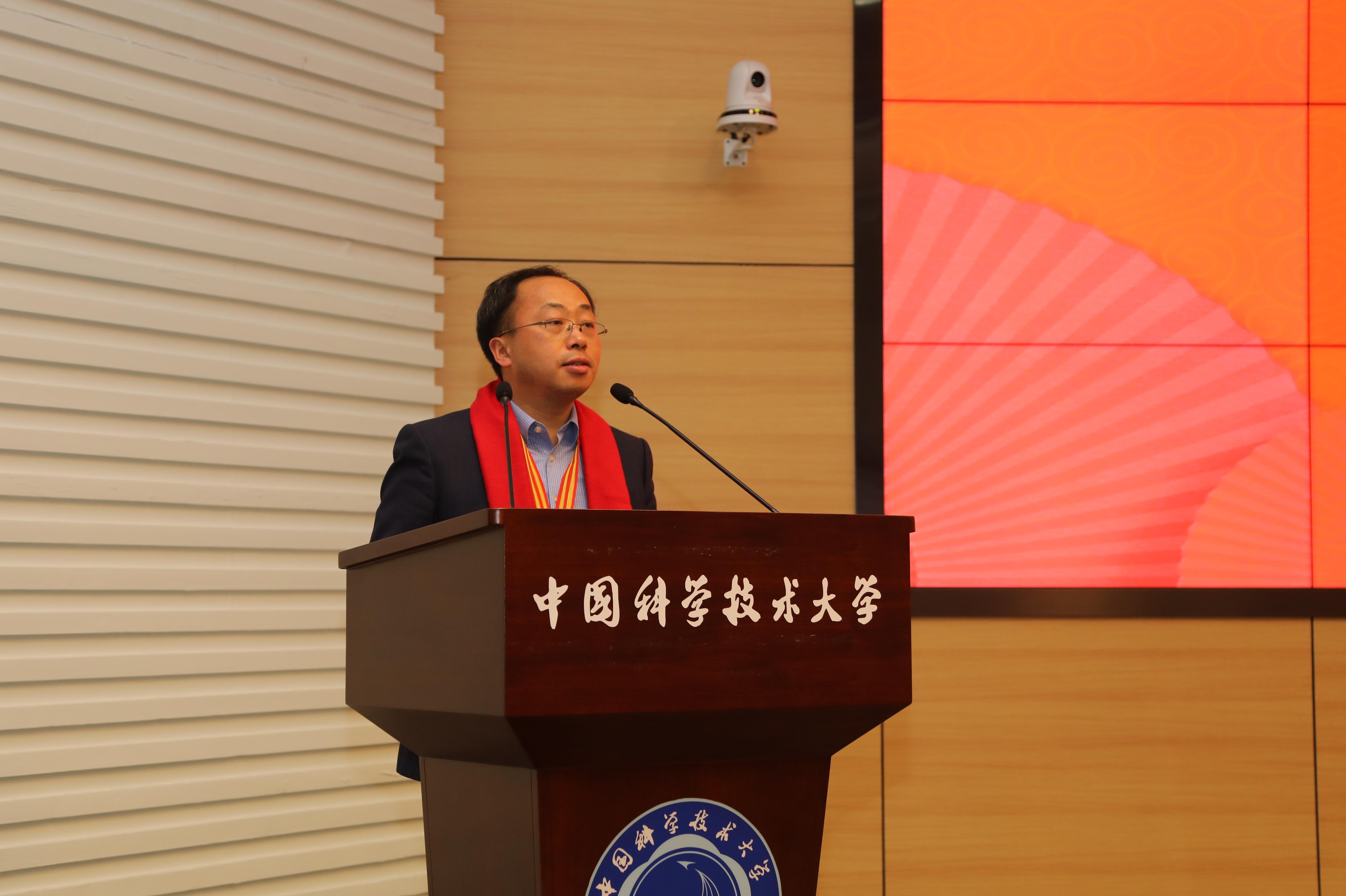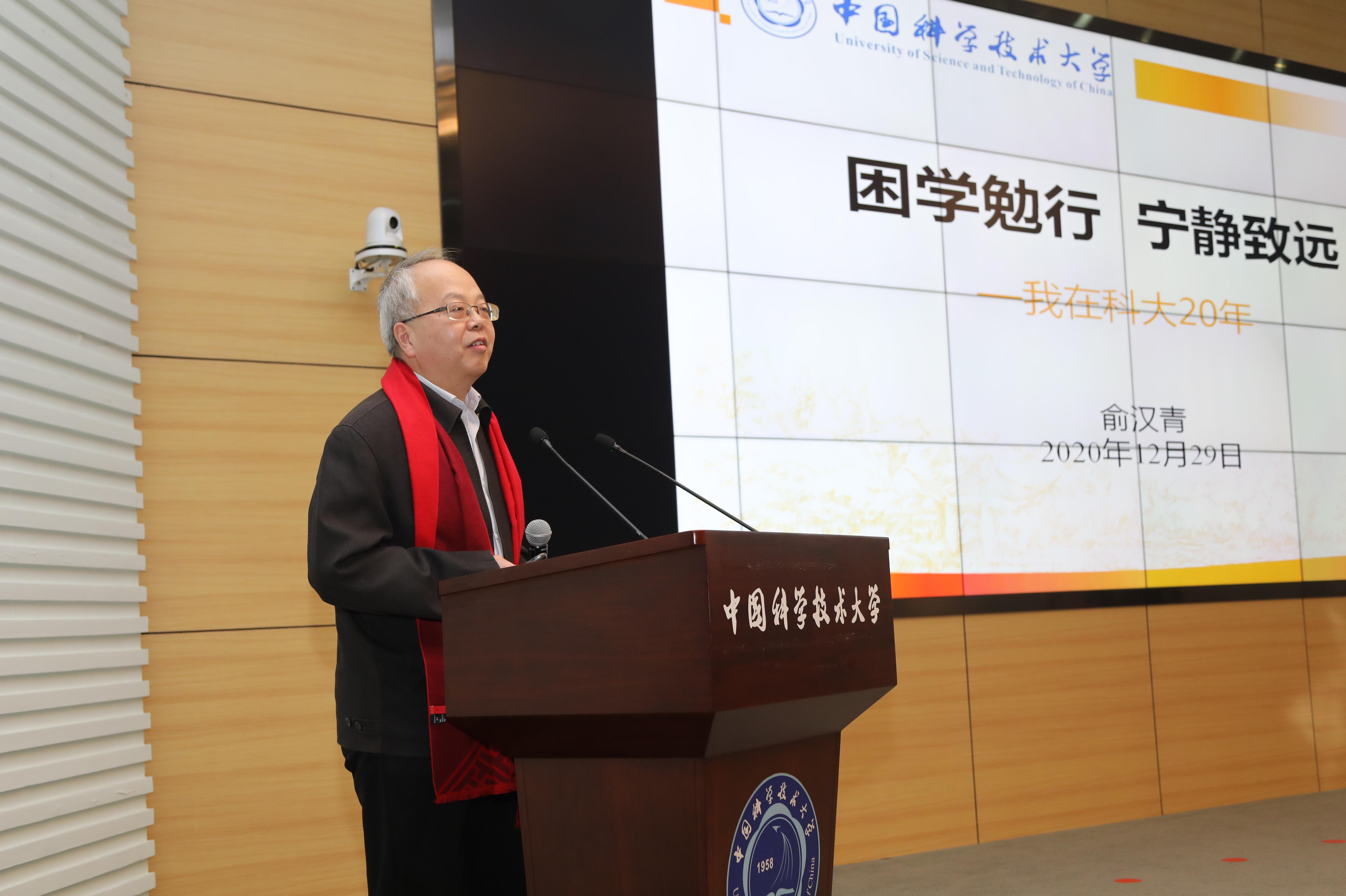 “全国先进工作者”俞汉青作了题为《困学勉行宁静致远——我在科大20年》的主题报告。