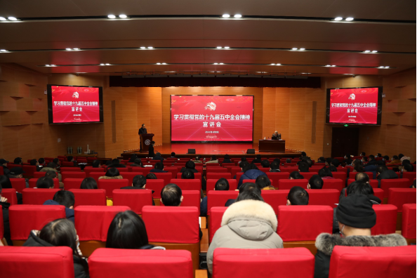 1月8日下午,在东区水上报告厅,中国科学技术大学学习贯彻党的十九届五中全会精神宣讲团成员,党委常委、副校长朱长飞同志作党的十九届五中全会精神宣讲。少年班学院、机关部门、档案馆(校史馆)、博物馆、图书馆、网络信息中心等单位师生员工代表聆听宣讲报告。宣讲会由机关党委常务副书记王伟同志主持。